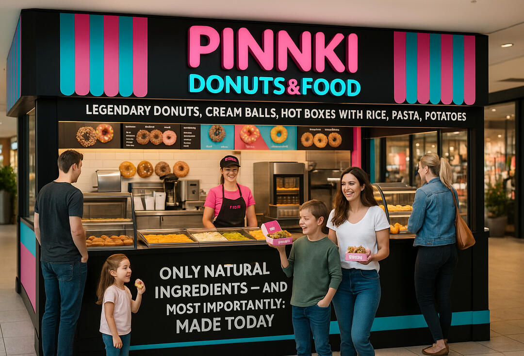 The main colors will be: pink, turquoise, and black. Inside, you’ll find greenery, wood, metal, and bright LED lighting.We’ll primarily focus on shopping malls, placing our cafés in food court areas — these are high-traffic locations that don’t require expensive renovations.We also plan to open many small takeaway cafés — that’s part of our vision.In the future, we may introduce flagship locations with seating areas and even PINNKI DRIVE cafés for drive-thru service, which would require a standalone building — but more on that later.We’re building a space where everyone feels comfortable, where the food is delicious, and the experience is always affordable.